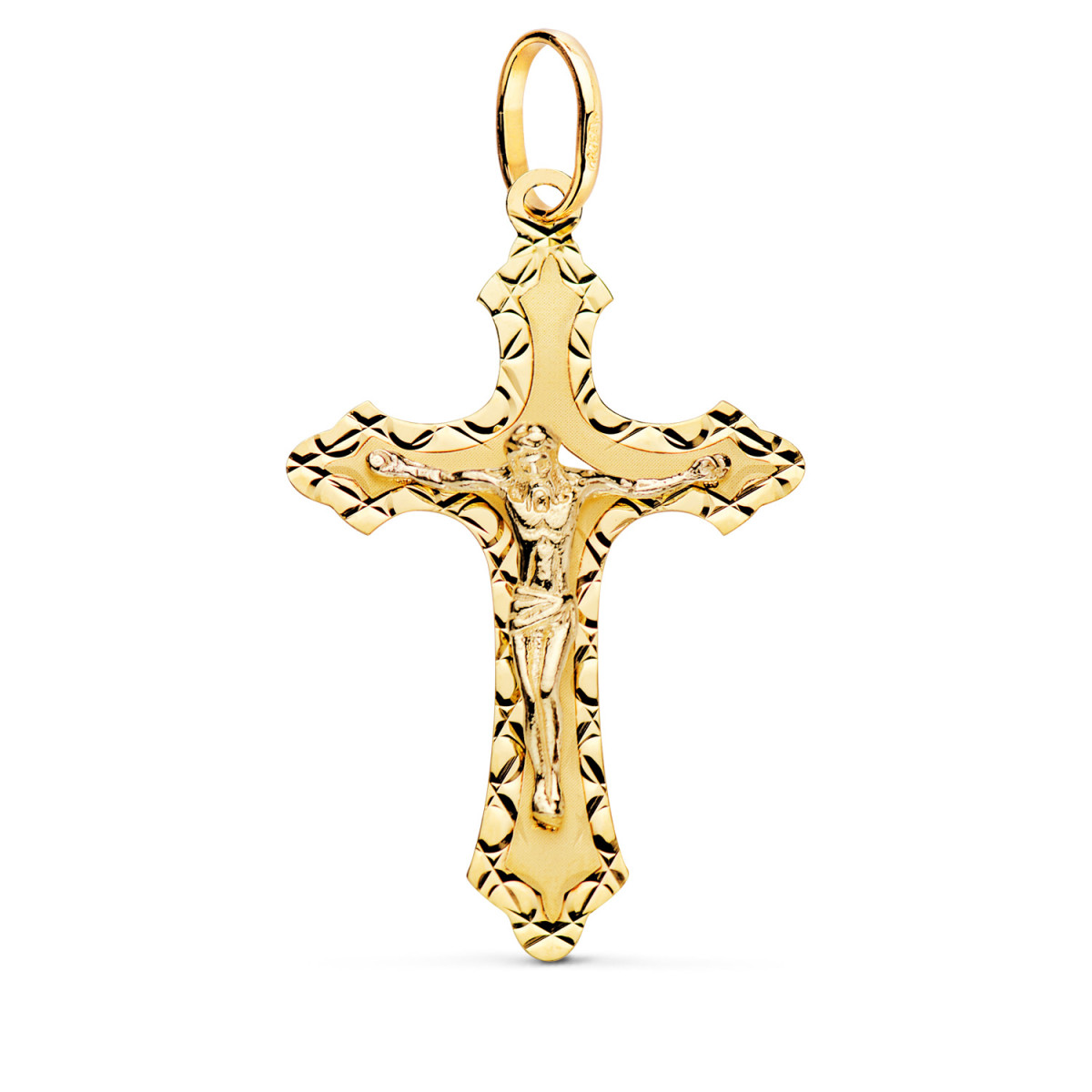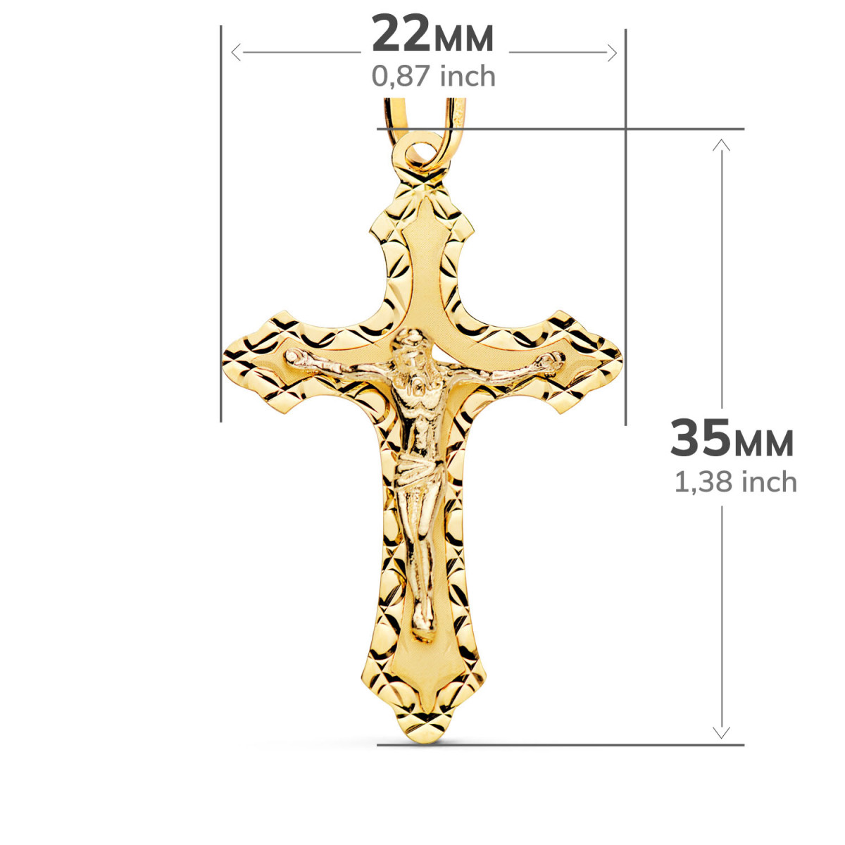 18K CRUZ ORO AMARILLO CON CRISTO TALLADA 35X22 MM