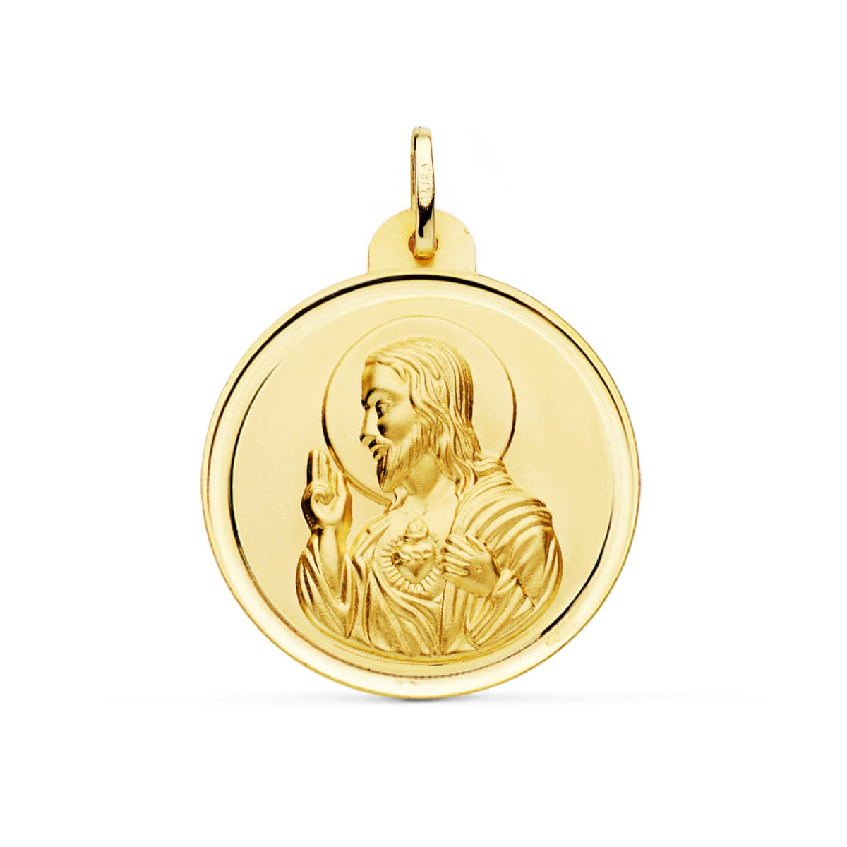 18K MEDALLA ORO AMARILLO CRISTO SAGRADO CORAZON DE JESUS BISEL 30 MM