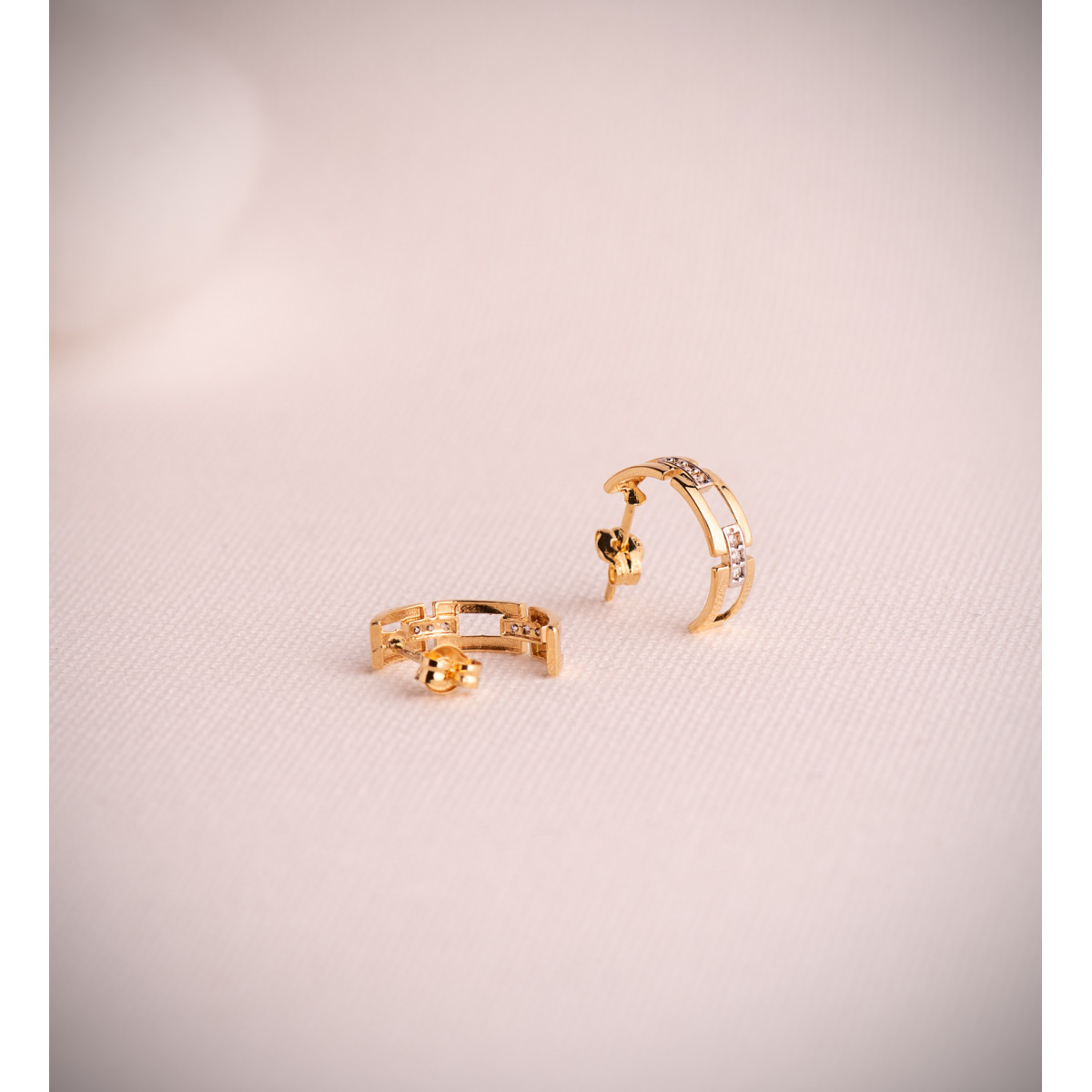 18K PENDIENTES ORO BICOLOR MEDIO ARO ESLABONES CON CIRCONITAS. MEDIDA: 13 X 3,5MM. CIERRE PRESION
