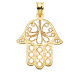 18K COLGANTE AMULETO ORO AMARILLO MANO FATIMA CALADA. MEDIDA: 32 X 29 MM