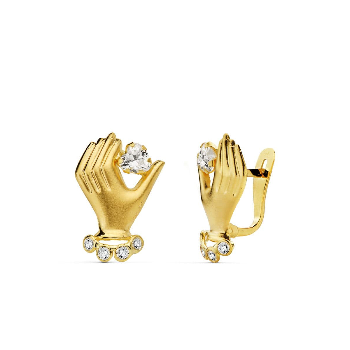 18K PENDIENTES ORO AMARILLO MANO Y CIRCONITA 17X11 MM CIERRE CATALAN