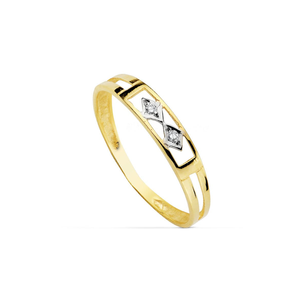 18K SORTIJA ORO BICOLOR CALADA CON ROMBOS Y CIRCONITAS. ANCHO: 3,5 MM