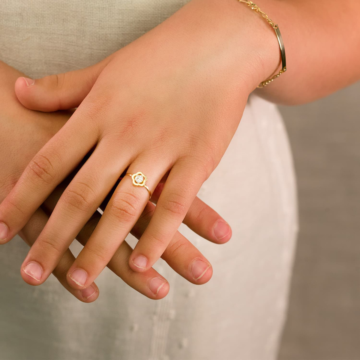 18K SORTIJA ORO AMARILLO COMUNION FLOR Y CIRCONITA 8X8 MM. ANCHO CUERPO: 1 MM