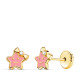 18K PENDIENTES ORO AMARILLO ESTRELLA ESMALTE ROSA 6,5 X 6,5 MM CIERRE TUERCA
