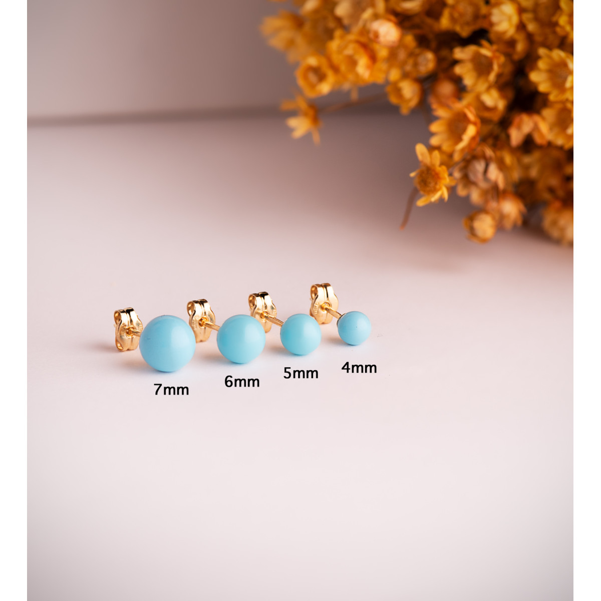 18K PENDIENTES ORO AMARILLO TURQUESA CON CASQUILLA. MEDIDA: 6 MM. CIERRE PRESION