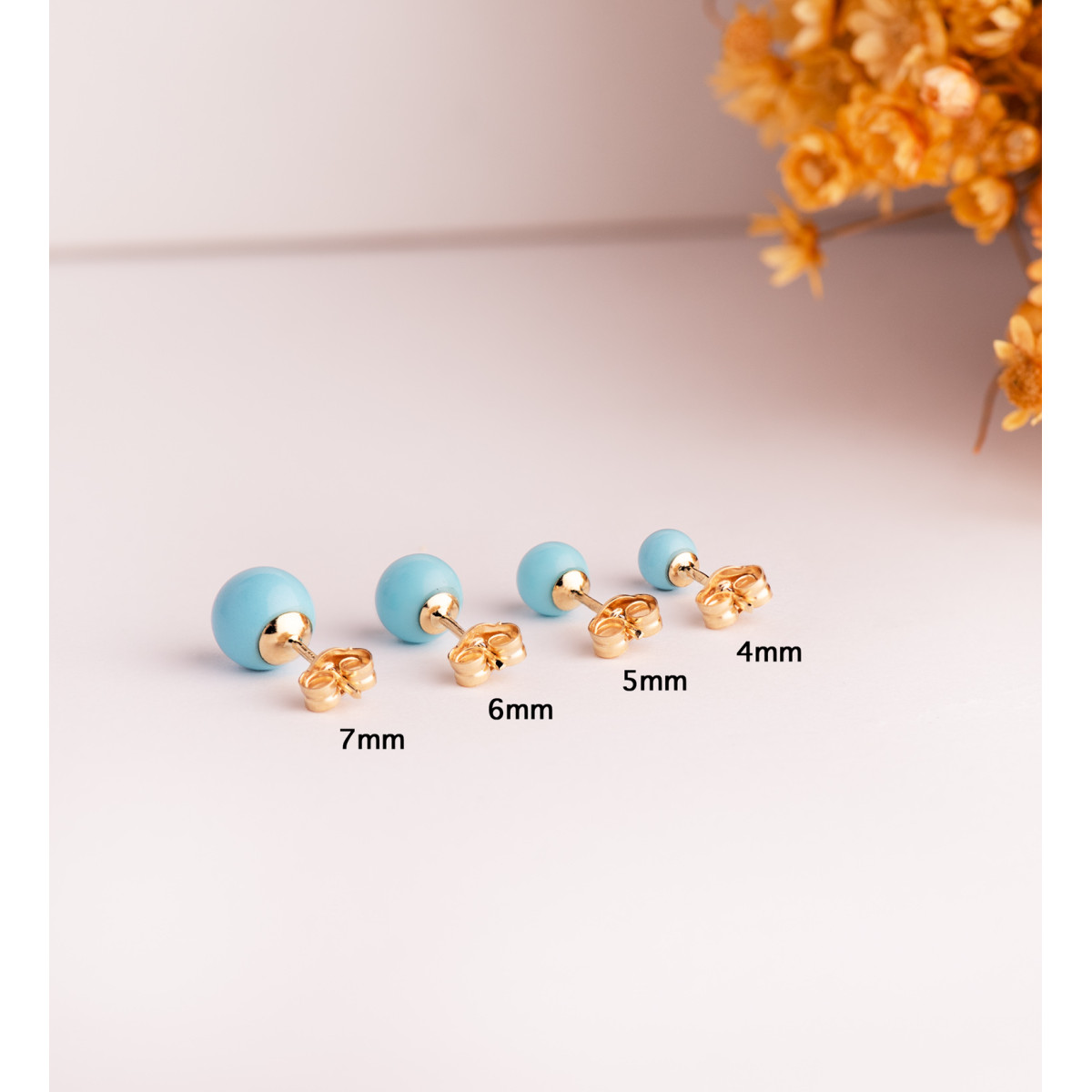18K PENDIENTES ORO AMARILLO TURQUESA CON CASQUILLA. MEDIDA: 7 MM. CIERRE PRESION