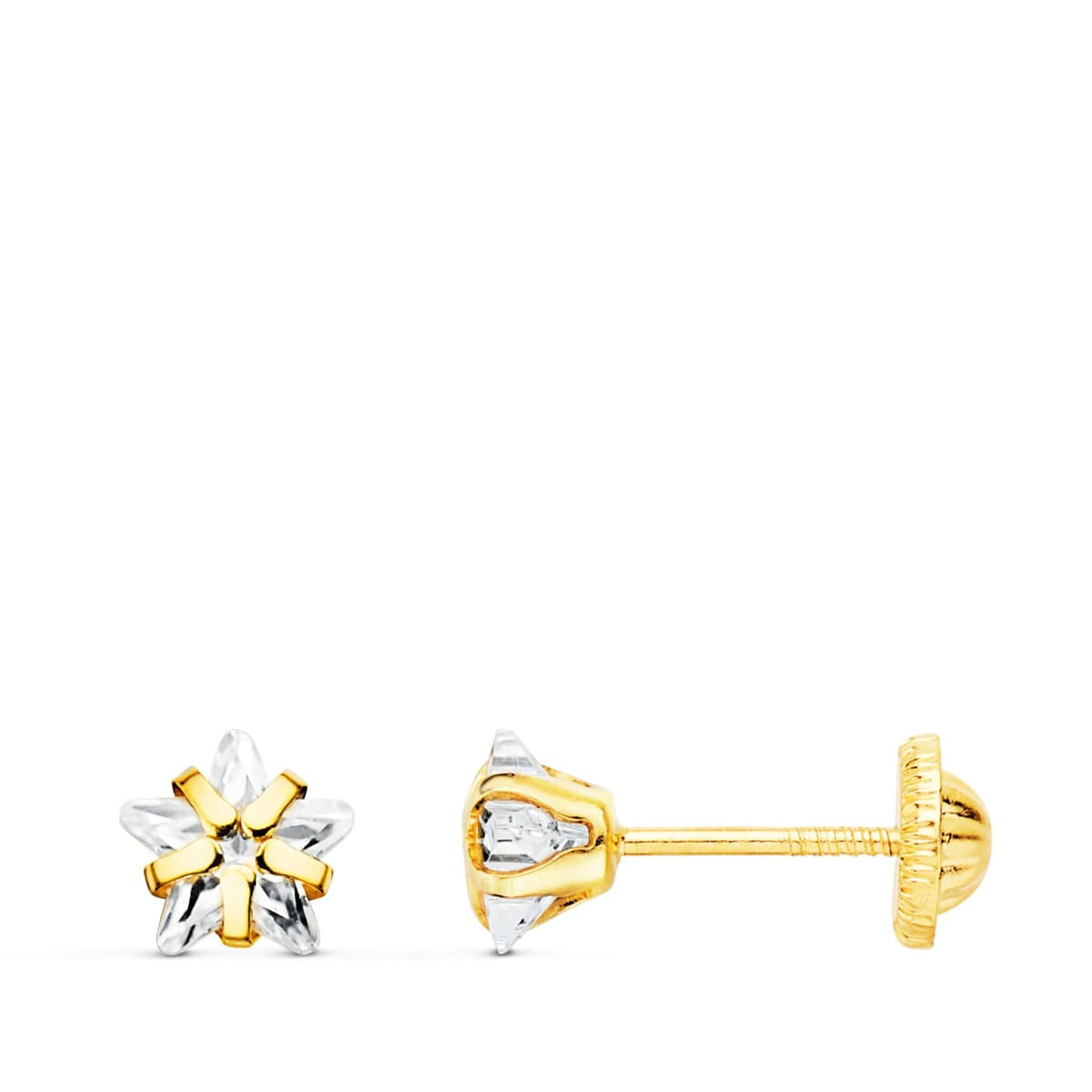 18K PENDIENTES ORO AMARILLO CIRCONITA ESTRELLA 5X5 MM CIERRE TUERCA