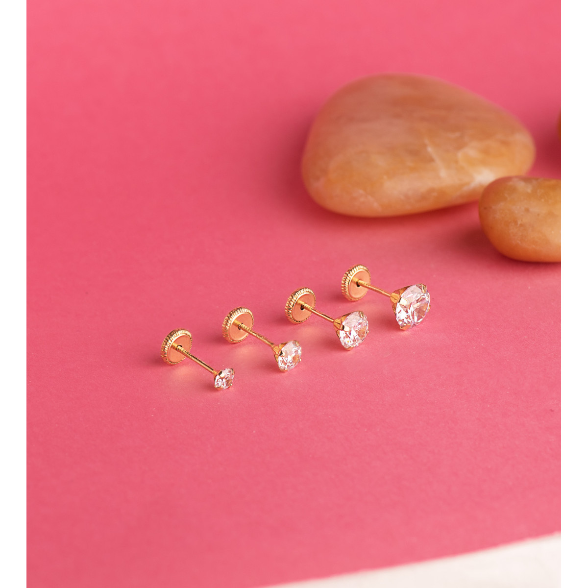 18K PENDIENTES ORO AMARILLO 4 GARRAS CON CIRCONITA. ANCHO: 5 MM CIERRE TUERCA