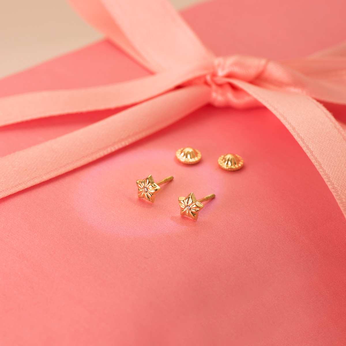 18K PENDIENTES ORO AMARILLO ESTRELLAS CON CIRCONITA 5 X 5 MM CIERRE TUERCA