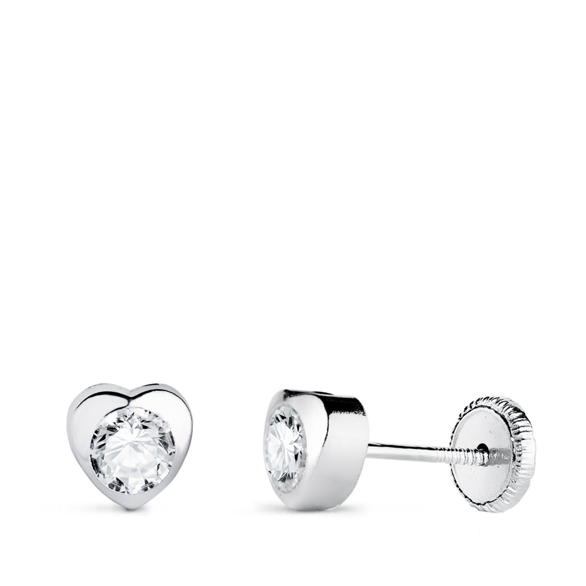 18K PENDIENTES ORO BLANCO CHATON CORAZON CON CIRCONITA. MEDIDA: 5 X 5 MM CIERRE TUERCA