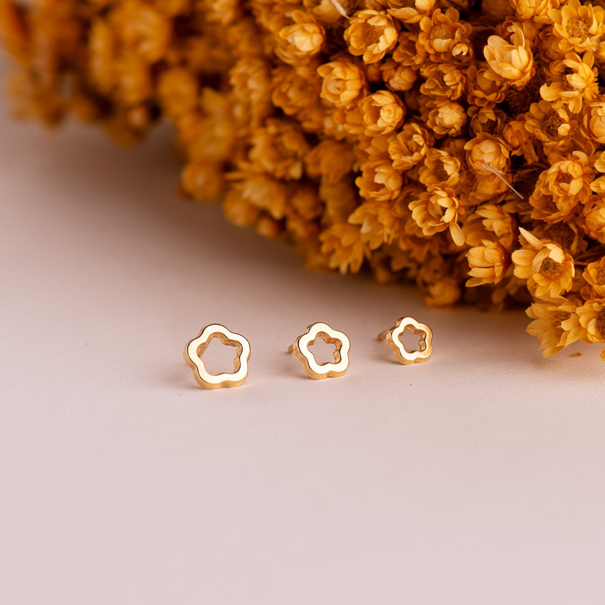 18K PENDIENTES ORO AMARILLO FLOR BRILLO CALADA 7 X 7 MM. CIERRE TUERCA