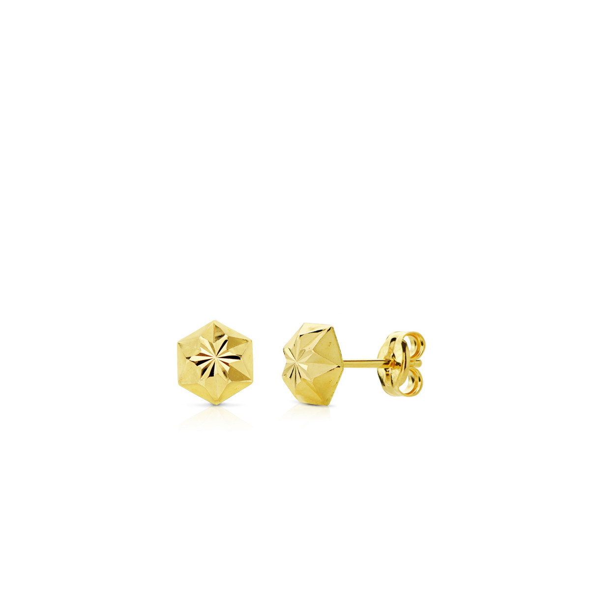 18K PENDIENTES ORO AMARILLO CLAVO ESTRELLA TALLADOS 6MM CIERRE PRESION