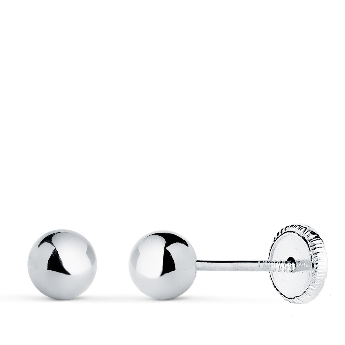 18K PENDIENTES ORO BLANCO BOLA LISA BRILLA HUECA. ANCHO: 5 MM. CIERRE TUERCA