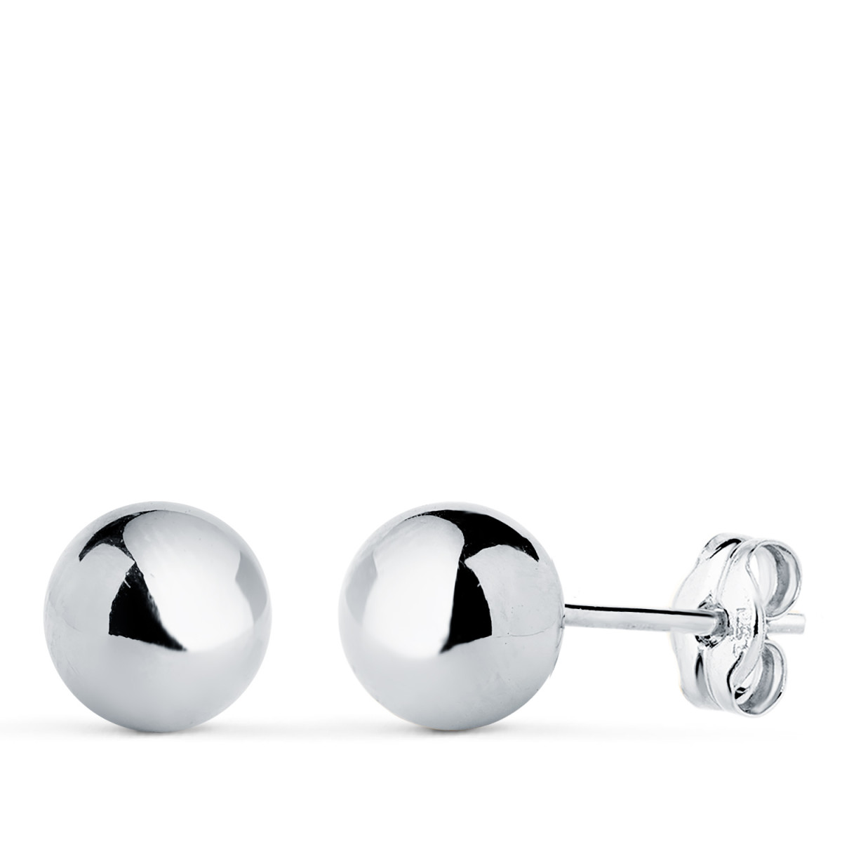 18K PENDIENTES ORO BLANCO BOLA LISA BRILLA HUECA. ANCHO: 7 MM. CIERRE PRESION