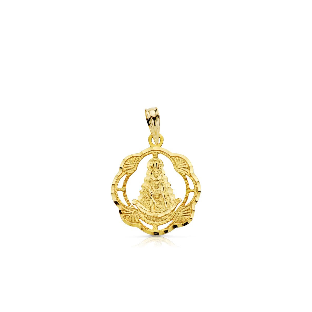18K MEDALLA ORO AMARILLO VIRGEN DEL ROCIO PANDERETA 20X17 MM