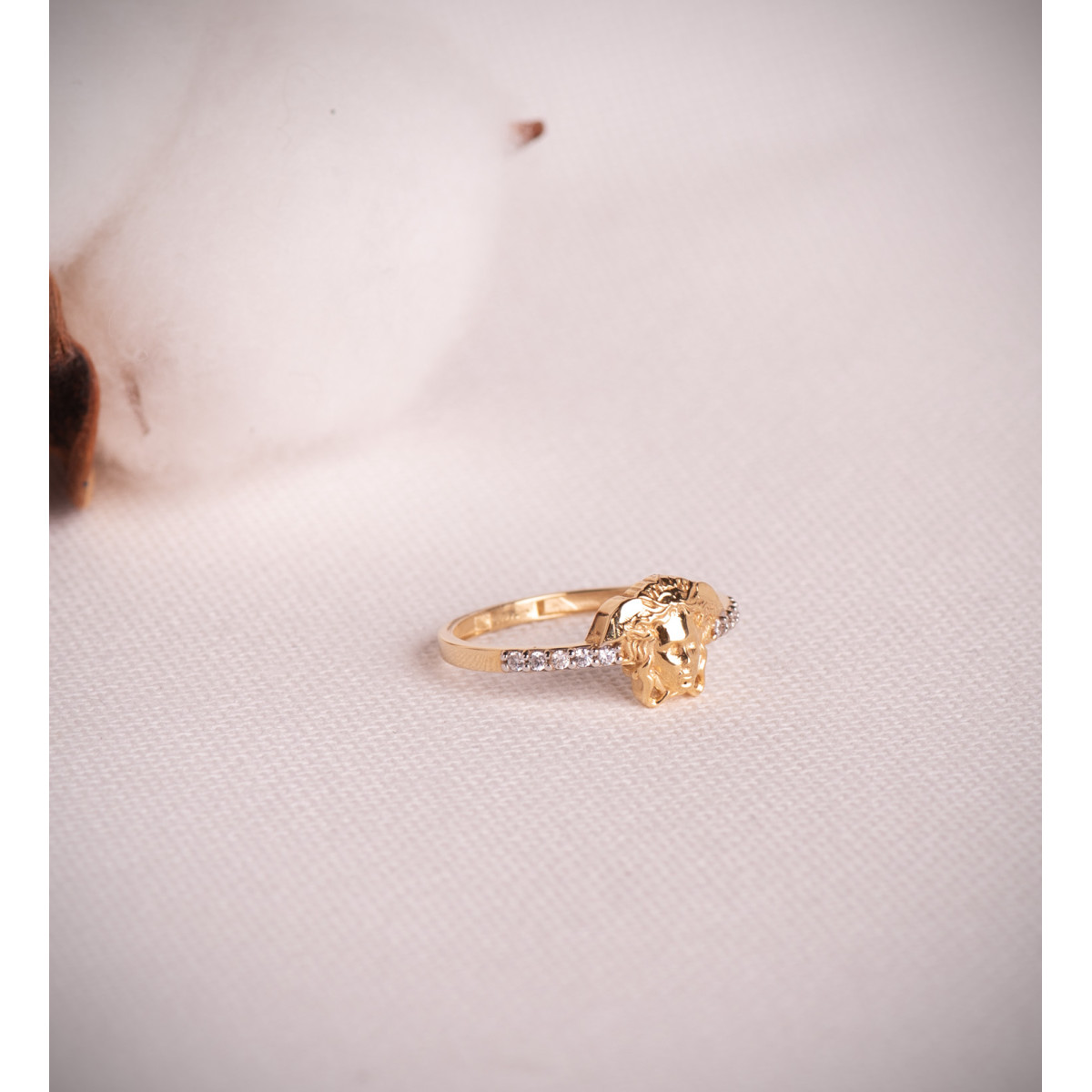 18K SORTIJA ORO BICOLOR CON MEDUSA Y CIRCONITAS. MEDIDA: 10 X 8 MM