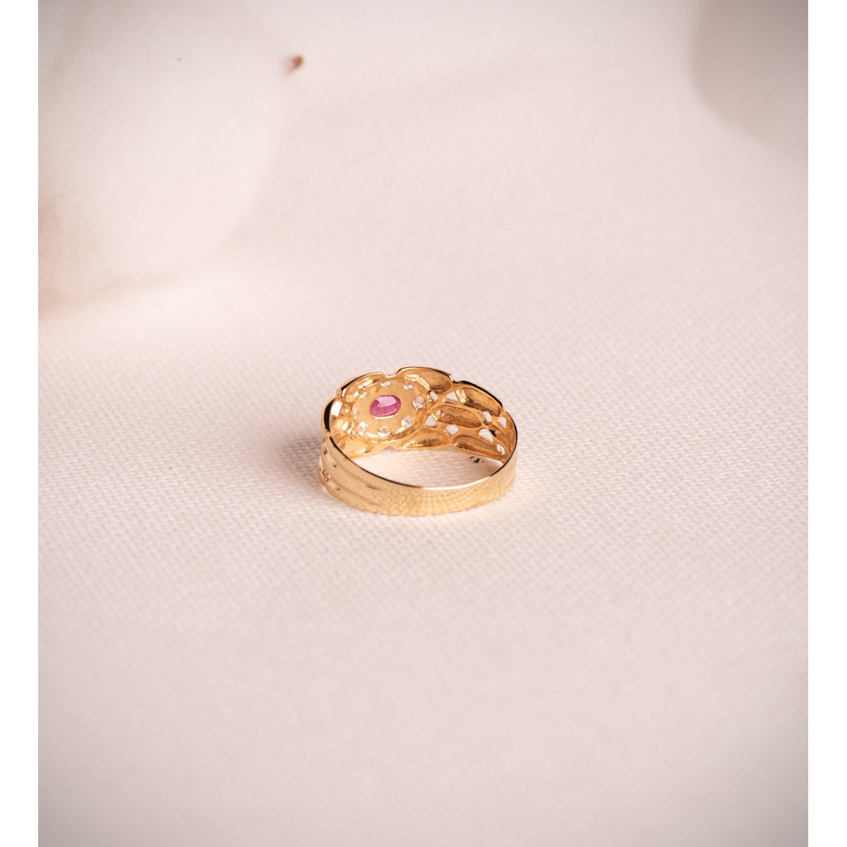 18K SORTIJA ORO AMARILLO PANTER CON CIRCONITAS Y RUBI NATURAL 4X3 MM. ANCHO: 9MM