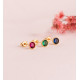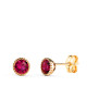 18K PENDIENTES ORO AMARILLO REDONDOS PIEDRA ROJA BORDES BOLITAS. MEDIDA: 5MM. CIERRE PRESION