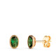18K PENDIENTES ORO AMARILLO OVAL PIEDRA VERDE BORDES BOLITAS. MEDIDA: 6 X 4MM. CIERRE PRESION