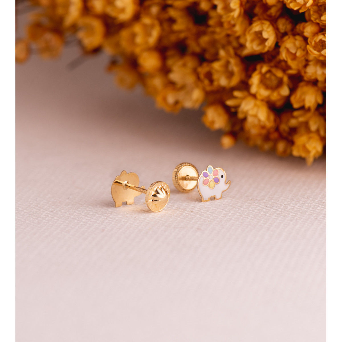 18K PENDIENTES ORO AMARILLO ELEFANTES ESMALTADOS. MEDIDA: 7 X 6 MM. CIERRE TUERCA