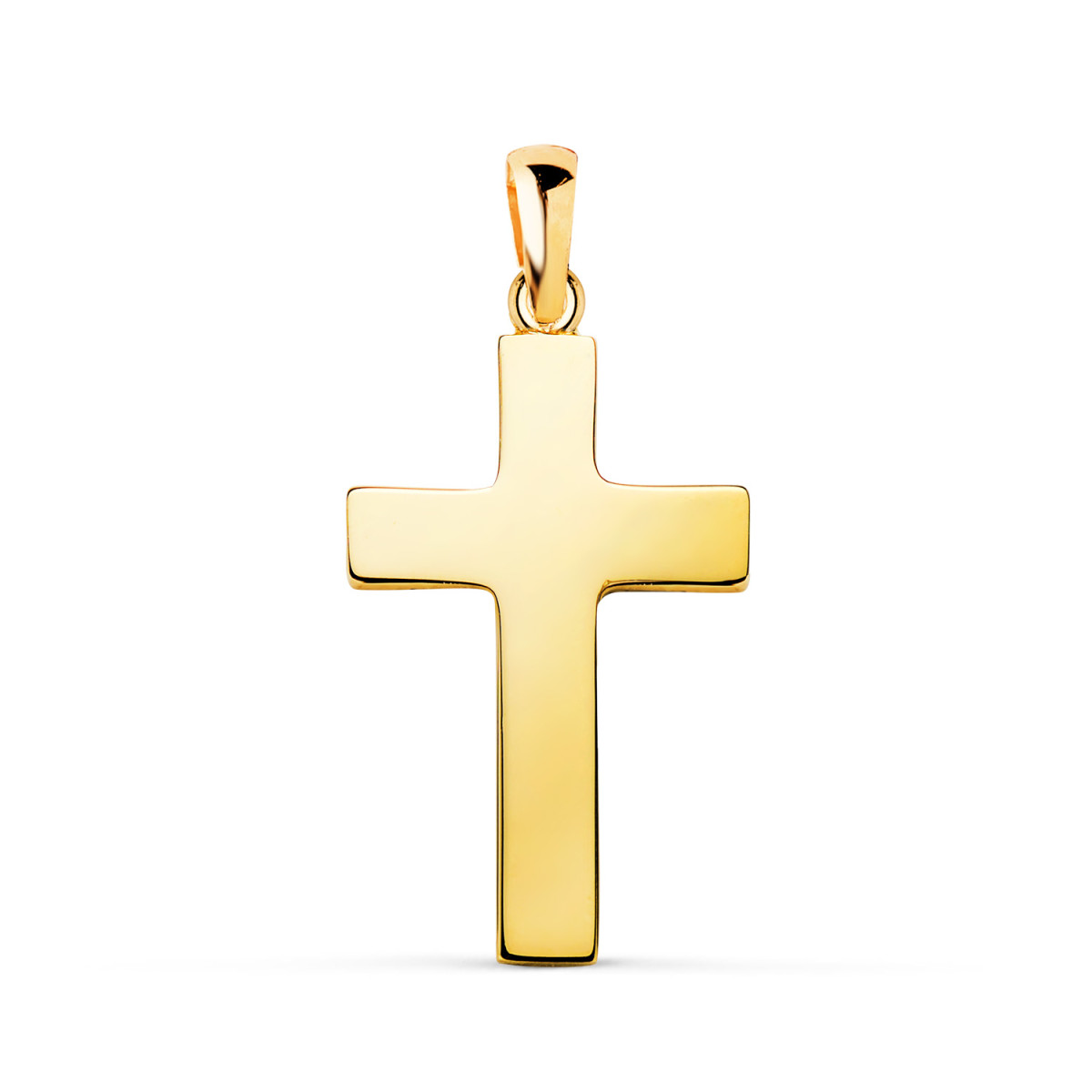 18K CRUZ ORO AMARILLO LISA HUECA PALO RECTANGULAR BRILLO. 23 X 14 MM. GROSOR: 1,5 MM