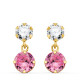 18K PENDIENTES ORO AMARILLO DOS CUERPOS CON CIRCONITA Y PIEDRA ROSA REDONDA 15 X 6MM. CIERRE PRESION
