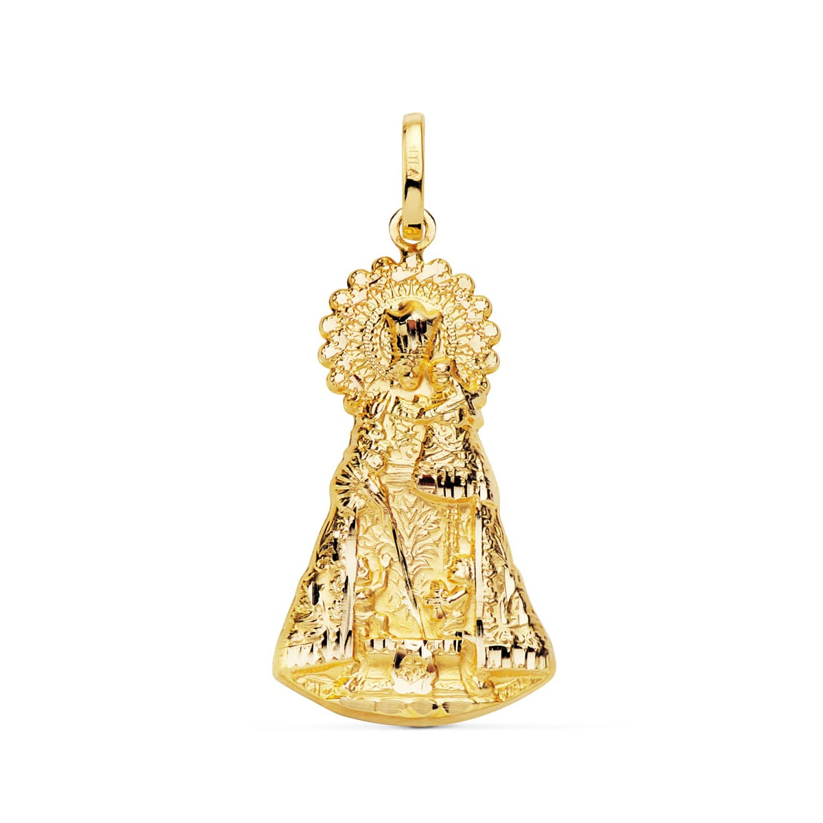 18K MEDALLA ORO AMARILLO VIRGEN DE LOS DESAMPARADOS SILUETA 33X18 MM