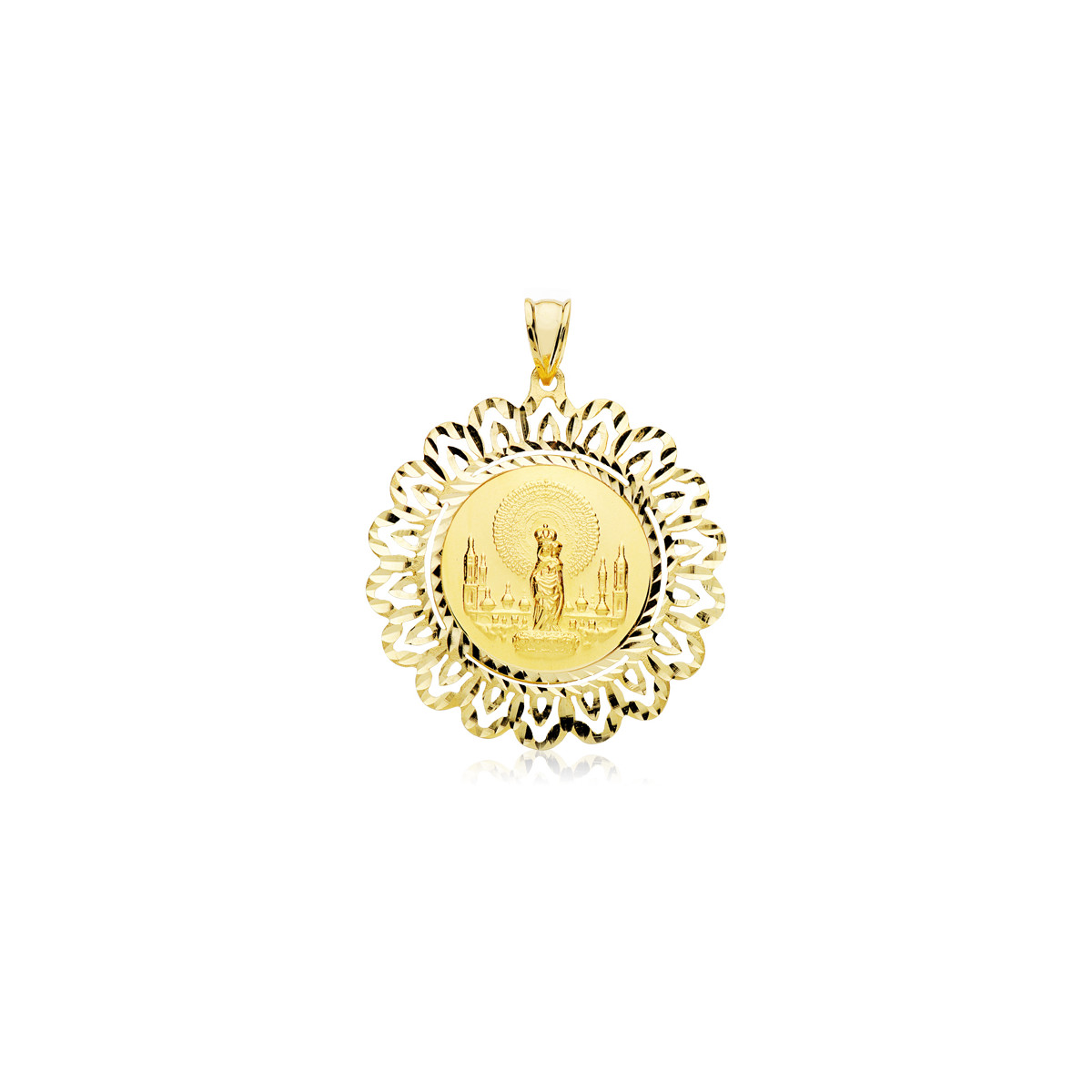 9K MEDALLA ORO AMARILLO CERCO VIRGEN PILAR 36 MM