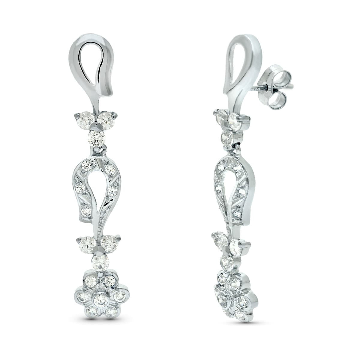18K PENDIENTES ORO BLANCO JUEGO NOVIA ARTICULADO CIRCONITA 42X7 MM PRESION