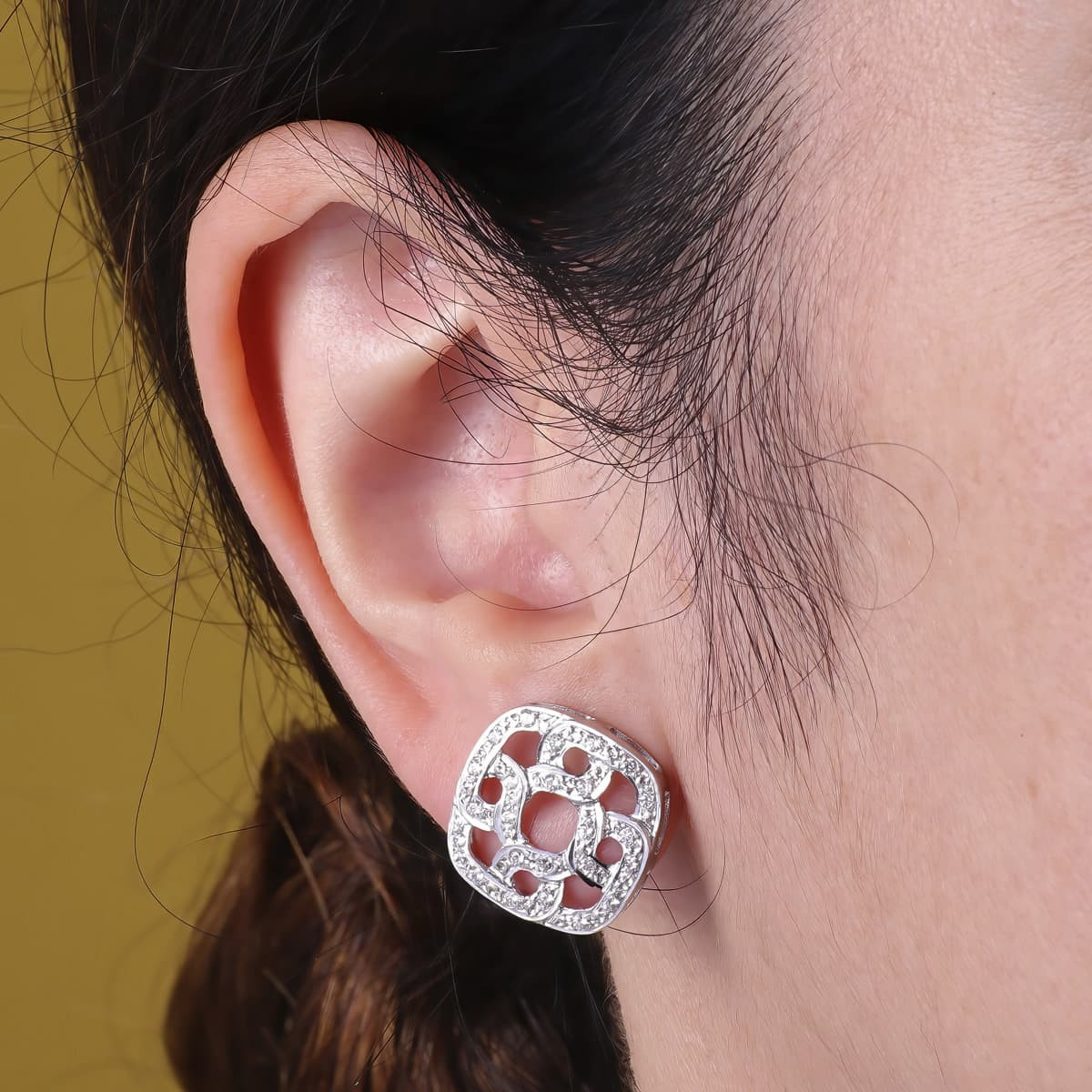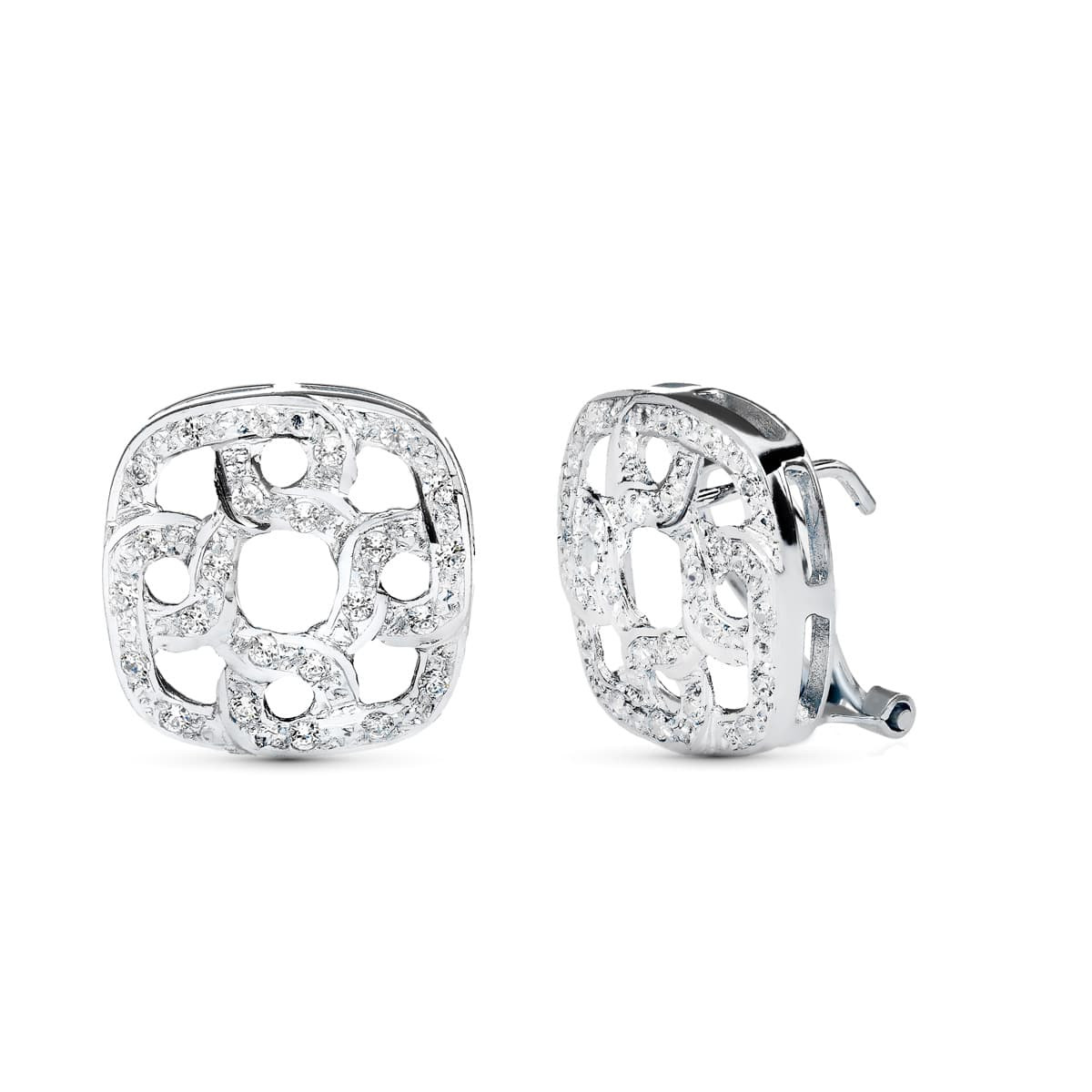 18K PENDIENTES ORO BLANCO JUEGO NOVIA 16X16 MM CIERRE OMEGA