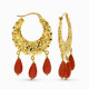18K PENDIENTES AROS ORO AMARILLO TALLADOS LAGRIMA CORAL