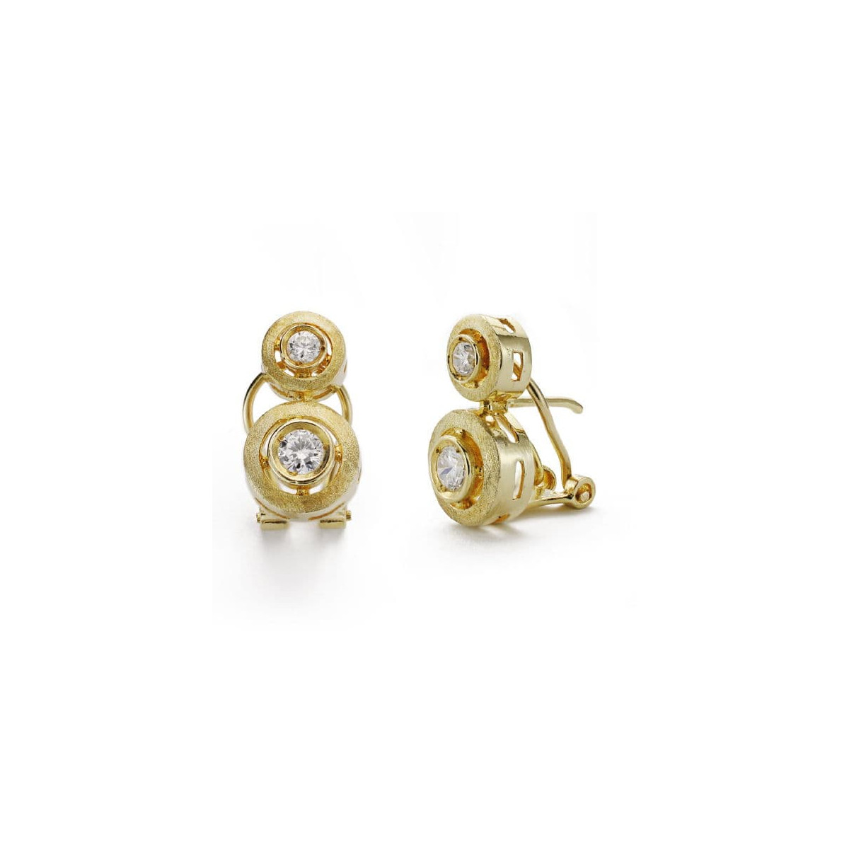 18K PENDIENTES ORO AMARILLO TU Y YO 2 CIRCONITA 16X9 MM CIERRE CATALÁN