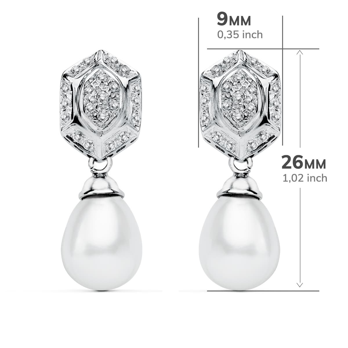 18K PENDIENTES PERLA ORO BLANCO CIRCONITA PRESION