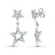 18K PENDIENTES ORO BLANCO DOS CUERPOS CON ESTRELLAS Y CIRCONTIAS 24X13 MM. CIERRE PRESION