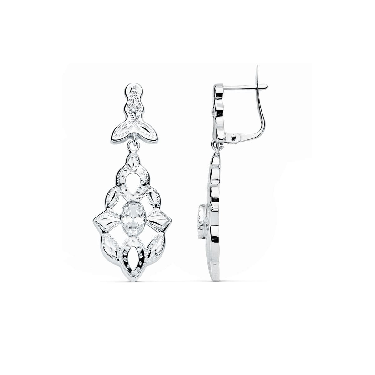 18K PENDIENTES ORO BLANCO CUBANAS 38X14 MMM CIERRE CATALAN