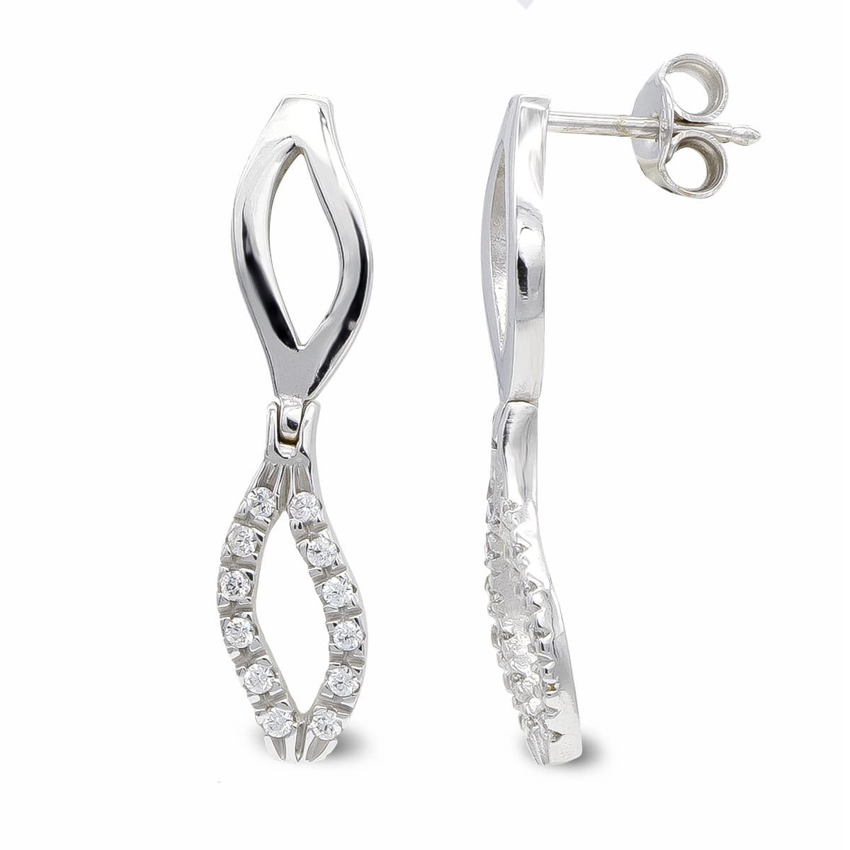 18K PENDIENTES ORO BLANCO LARGOS Y CIRCONITA CIERRE PRESION