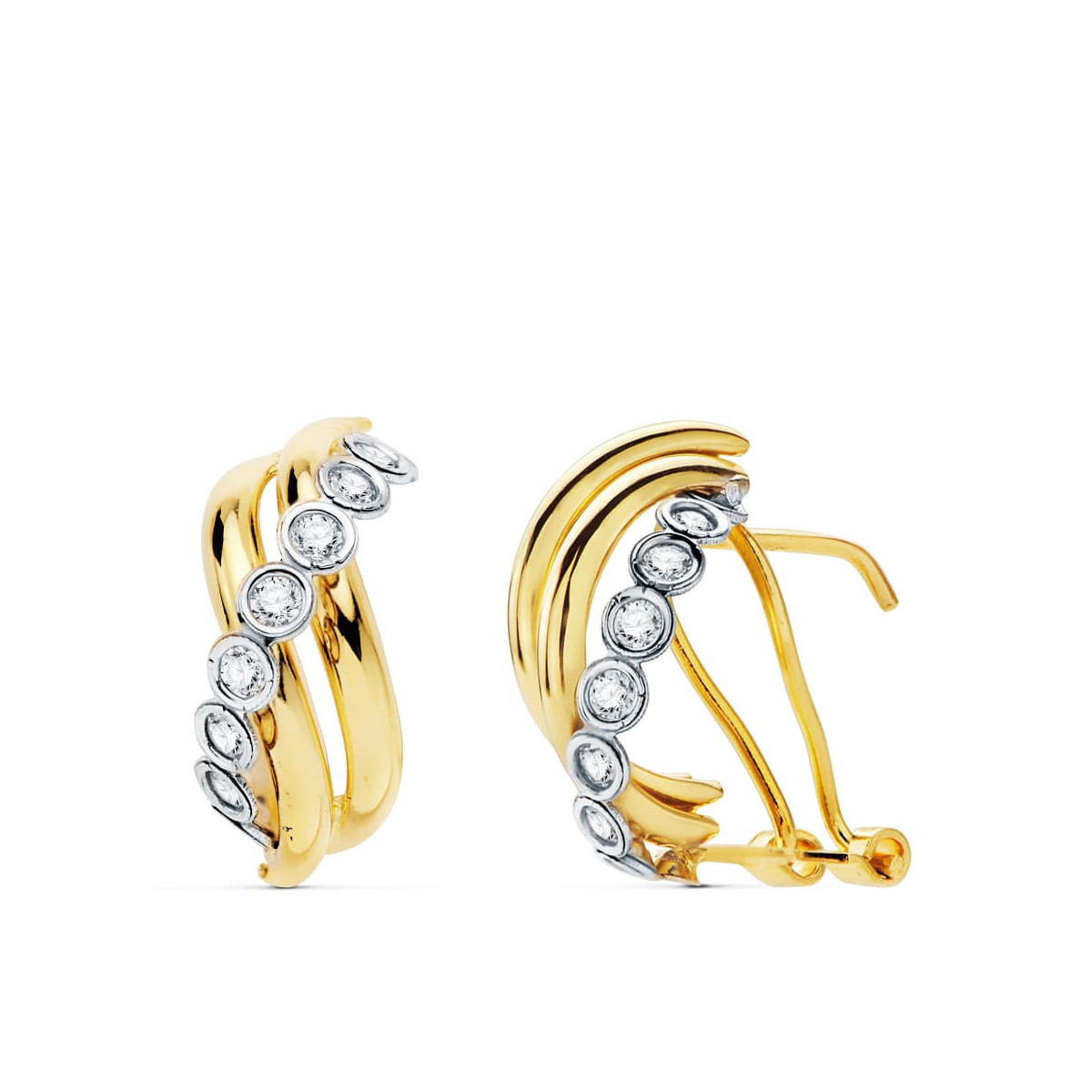 18K PENDIENTES ORO BICOLOR BANDAS 16X8 MM CIERRE OMEGA