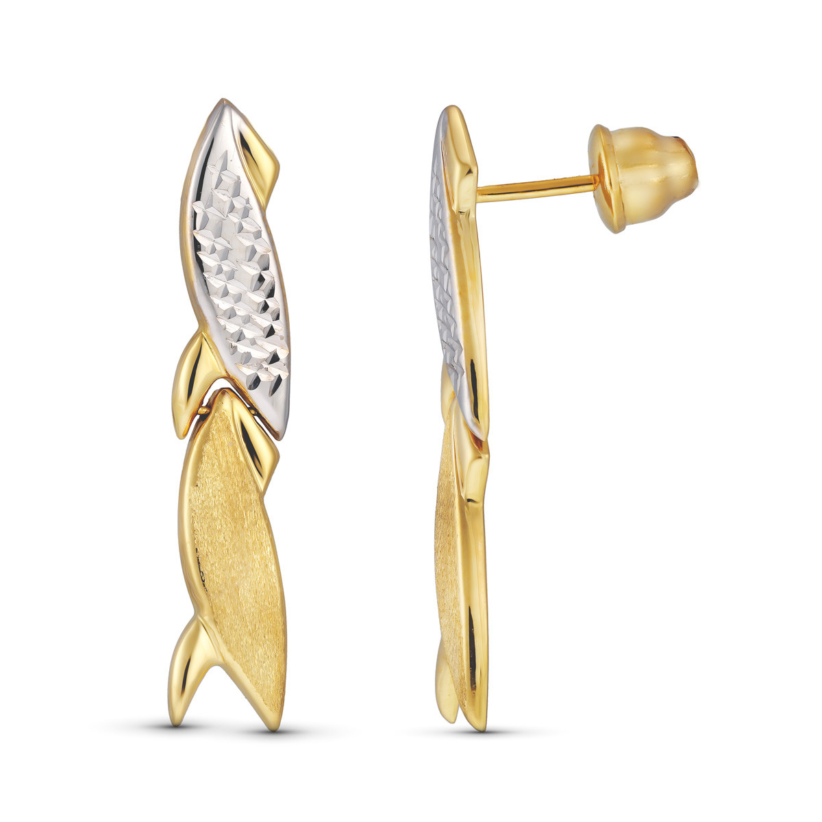 18K PENDIENTES BICOLOR TALLADOS CIERRE TUERCA