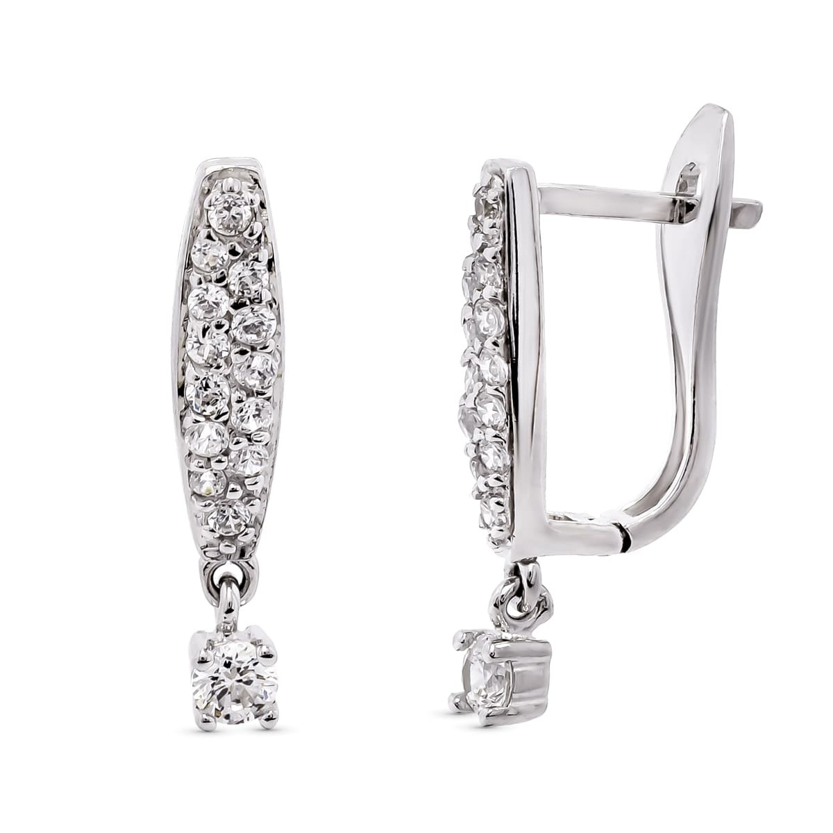 18K PENDIENTES LARGOS ORO BLANCO CON CIRCONITA 20X4 MM CIERRE CATALAN