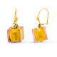 18K PENDIENTES ORO AMARILLO MURANO CUBO. 26X10 MM CIERRE PRESION