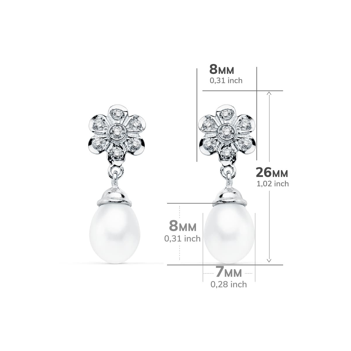 18K PENDIENTES ORO BLANCO PERLA 23X8 MM CIERRE PRESION