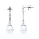 18K PENDIENTES ORO BLANCO PERLA Y CIRCONITA 28X8 MM CIERRE PRESION