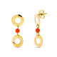 18K PENDIENTES ORO AMARILLO LARGOS DOS CIRCULOS Y CORAL CIERRE PRESIÓN