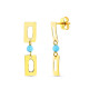 18K PENDIENTES ORO AMARILLO LARGOS TURQUESA 3MM RECTANGULOS PRESION