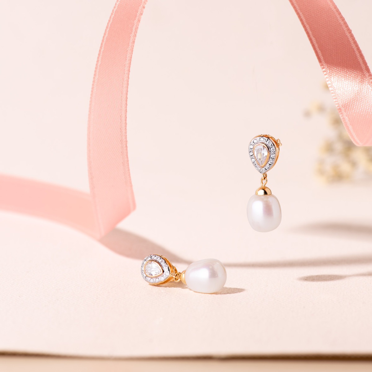 18K PENDIENTES ORO BICOLOR DOS CUERPOS CON PERLAS Y CIRCONITA 25 X 8MM PRESION