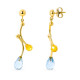 18K PENDIENTES ORO AMARILLO LARGOS PIEDRAS AGUAMARINA Y CITRINO CIERRE PRESION