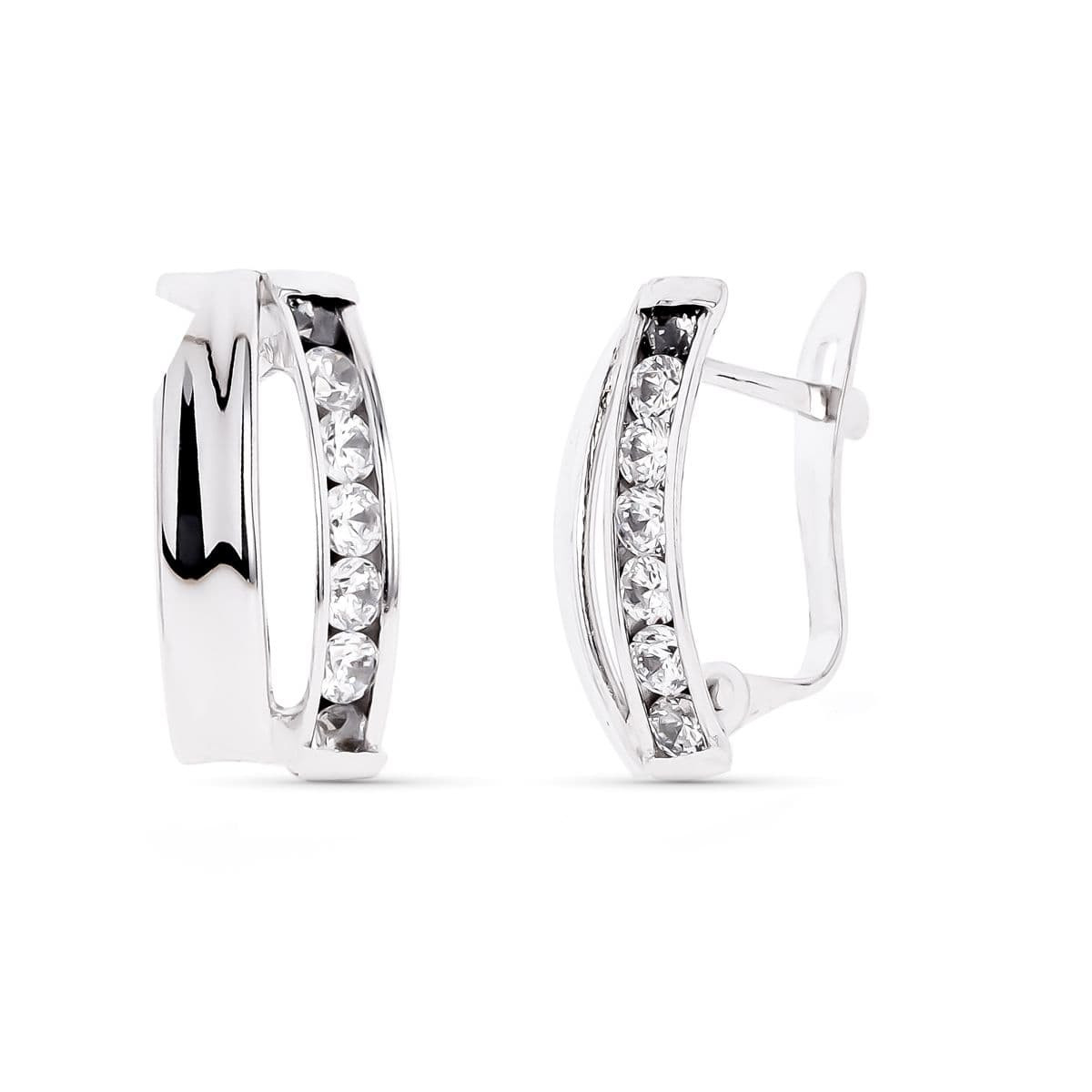 9K PENDIENTES ORO BLANCO BANDAS CON CIRCONITA 14X7 MM CIERRE CATALAN