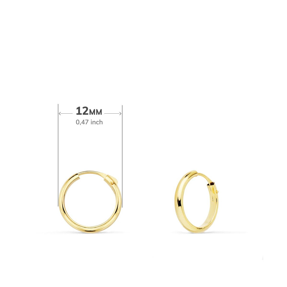 18K AROS ORO AMARILLO MEDIA CAÑA LISOS LIGEROS. 12X2 MM