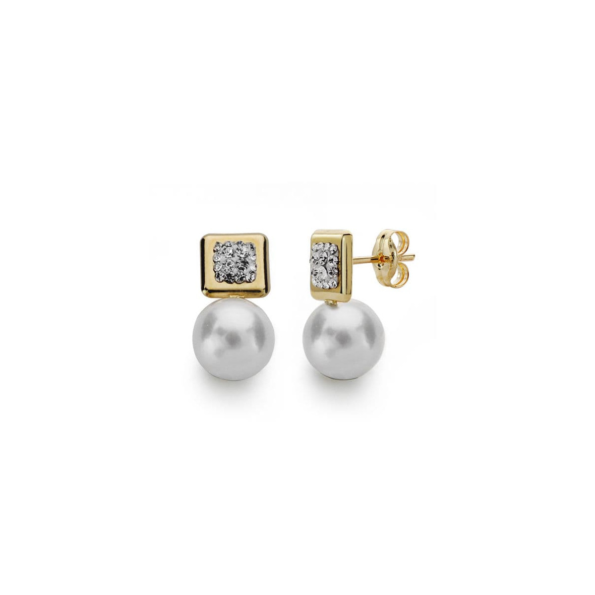 9K PENDIENTES ORO AMARILLO PERLA 7.5-8 MM TOTAL 14X8 MM CIERRE PRESION