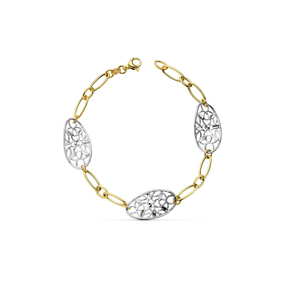 18K PULSERA BICOLOR HOJITAS 19CM